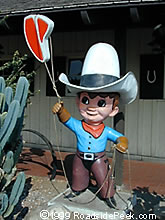 Check out what could be an old A&W mascot. She's now a roadside greeter