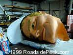 with the head of a Statue of Liberty copy, this Mentone guy greets or