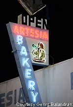 This neon sign for the Artesia Bakery features an interesting