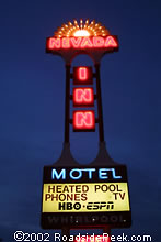 The Nevada Inn Motel sign still lights up the sky when dusk sets