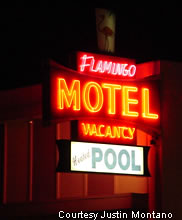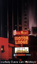 The Reno Motel marquee proves to be a colorful sight at night.