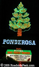 The Ponderosa Motel is a familiar site as you enter or leave town along Virginia Blvd. This huge neon pine tree is a welcome sight after a long tiring journey. Unfortunately, this sign has been replaced by a large rectangle tower sign that seems to be all the rage at casino hotels these days.