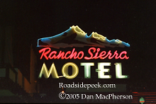 Here's a shot of the Rancho Sierra Motel which shows the contrast of old neon and new quasi-neon (the white), which is actually another gas. The old neon has a softer look to it. 10-05