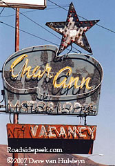 Here's and old faded out marquee that looks like it took many hits from the Nevada desert sun. The star no longer shines at the Char Ann Motor Lodge. 02-07