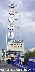 The Purple Sage Motel keeps to its premise... with a purple sign.