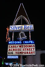 The neon letters still light up at the Chapel of the Bells along Las Vegas Boulevard. The Chapel of the Bells is located right next door to the Fun City Motel.