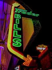 Trader Bill's has been a downtown Las Vegas landmark since around 1912. Back in the day, Trader Bill's was a familiar leather and Western themed gift shops with Indian jewelry and of course leather items. Just before the millennium, Harley Davidson took over a good part of the building. In the meantime, the familiar neon sign still greets Las Vegas residents and visitors alike.