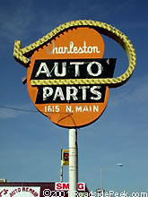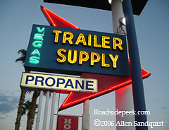 The big red arrow points the way to the front door of the Vegas Trailer Supply in Las Vegas. This old sign is one of the few remaining neon lit ones along this end of the Boulder Highway in Las Vegas. 09-06