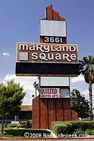 Here's the familiar shopping center sign for the Maryland Square off Maryland Parkway in Las Vegas. From the looks of the shopping center, many of the stores were shut down. At some point in 2005, the school district purchased the site and word is an elementary school is now occupying a part of this location. 12-08