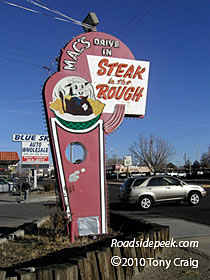 Check out the roadside marquee for Mac's Steak in the Rough located in Albuquerque, NM. Follow the happy cow on the sign to this drive-in eatery. 12-10