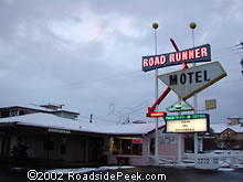 along the main drag in Gallup, NM. Especially with the snow on the roof, the Road Runner Motel shows off its Route 66 roots.