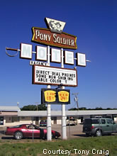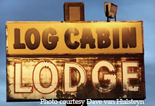 This marquee is for the Log Cabin Lodge in Gallup, New