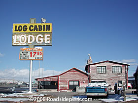 This marquee is for the Log Cabin Lodge in Gallup, New