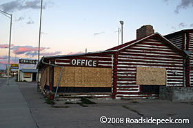 lookalikes for motel rooms. Each log cabin featured a kitchenette and fireplace. According to the book Route 66 in New Mexico, the Log Cabin Lodge opened in July 1938 and closed in the 1990's after going through multiple owners. The motel sat vacant for 10 years then after a fire struck the venerable lodge in April 2004, the motel has been demolished.