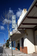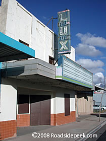 Route 66 in Tucumcari, NM. This theatre is still open for movies. Check out the neon blade sign on the side of the old theatre. 03-08