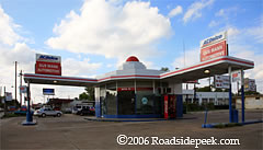 This deco delight of a gas station is located in San Antonio, TX. See this and more at Roadside Peek'sPetrol Pumps Texas.