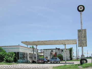 Here's another of McLean's many old gas stations. Check out the tire on top of the sign. I wonder what the gas prices looked like here in McLean in 2000. 08-21
