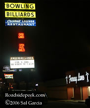 Bowl at Freeway Lanes. At least that's what the Central California bowling alley by the same name says.