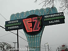 Here's a grand roadside sign for the EZ burger joint. See other burger