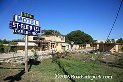 UPDATE 10/06 : The St-Elmo-Tel Motel located on S Congress Avenue will soon be no more. During a visit in September, 2006, the motel buildings were in the process of being demolished. Word is the sign itself has been purchased by a sign collector. 10-06
