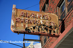This old sign is now faded and has graffiti. The sign for the Alamo Service Co also used to have neon lettering that displayed refrigeration and heating below. San Antonio, TX. 10-06