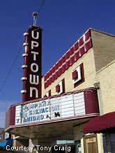 UPDATE 07/08 : The City of Grand Prairie purchased the Uptown Theater in 2005 and is in the midst of restoring it and rehabilitating it into a 410 seat performing arts center. The grand opening is scheduled for November of this year. The photo taken to the left was by Randy Carlisle in Winter 2007. More information can be found on the Uptown Theater site. Many thanks to Elspeth McDonald, Managing Director of the Uptown Theater, for update. 07-08