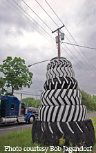 Looking like a wound up snake, this Pile of Tires for this tire shop