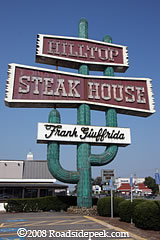 This huge marquee will direct the tired and hungry traveler over to the Hilltop Steak House in Saugus. First opening for business in 1961, the Hilltop has some great food and features its side orders family style. The question remains though, who is Frank Giuffrida? 02-08