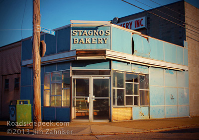 Stagno's Bakery no longer bakes today. Take a look at the colors of yesteryear as the panels fade and crinkle off the walls of the building. 01-13