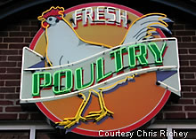 Here are a couple of nice neon signs (below) advertising Meats and Fresh Poultry. Both sign are found in Baltimore,