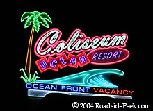 Here's an eye-catching neon marquee from Wildwood Crest, NJ. The Coliseum Ocean Resort's sign really seems to light up the boulevard.