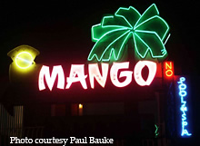 Sporting a name with a tropical theme, the Mango Motel features a neon lit palm tree along with the requisite neon lettering