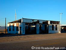 Below are photos taken on 10/17/99 of Route 66 near Ludlow, California, one day after a large 7.0 earthquake struck the Hector Mines area of California at 2:46 a.m.  The Route 66 town of Ludlow, a few miles north of the epicenter, sustained minor damage according to news services.