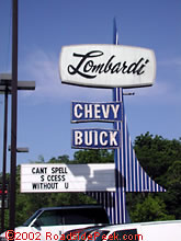 Across from the Gemini Giant is the Lombardi Chevy and Buick Dealership. What could be better than an old vintage car dealership on the Mother Road.
