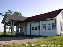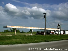 Below are a couple of updates regarding the "Abandoned Eatery" 07/04 Many thanks to Joe Szabo and Erik C. Nielsen : As a child, my family travel this route regularly from Chicago past Springfield to visit my grandparents. Lexington, IL was about half way and a regular stop was the "Oasis" a burger and milkshake drive-in. That's your unidentified drive-in in Lexington, IL. I'd recognize it anywhere. I'm not sure when it shut down, but I do remember stopping there after I-55 opened up. Ah, the best burgers and shakes! - Joe Szabo The drive in was called the "Oasis Drive-In". It is actually surrounded by the original Route 66 (30's-50's) on the east and by the new Route 66 on the west. It is on the very south, south-west portion of town. Was quite the place for teenagers to "hang-out" and show off cars during the late 60's through the 70's. I believe it finally shut down for good in the mid 80's. Lexington is also host to an annual "Taste of Country Fair" and has often hosted the Route 66 Association in conjunction with this festival each summer. The "old" original Route 66 through town is no longer connected to the "new" Route 66 but still has a number of antique gas stations along the 2 miles that the original road follows through Lexington. To hear the "old timers" talk of back in the early 30's when the "gangsters" would drive their Cadillacs and Buicks through Lexington on their way to Saint Louis, you could almost hear the "open pipes" that these cars ran as they sped through town at 50-60 mph! - Erik C. Nielsen