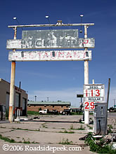 Also along old Route 66 in Shamrock is this old faded out sign for the Rock City Trucks. Remember when gas used to be $1.13? 08-06